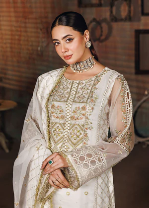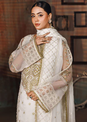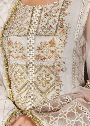 Additional Description: Long shirt with trouser paired with Javeria Net duppata, an outfit completes the look with heavy embroidery and embellishment.