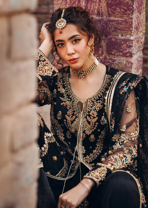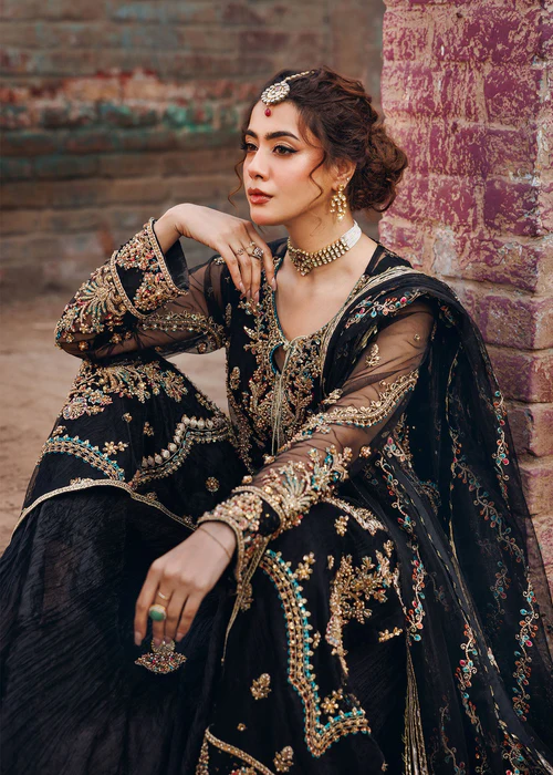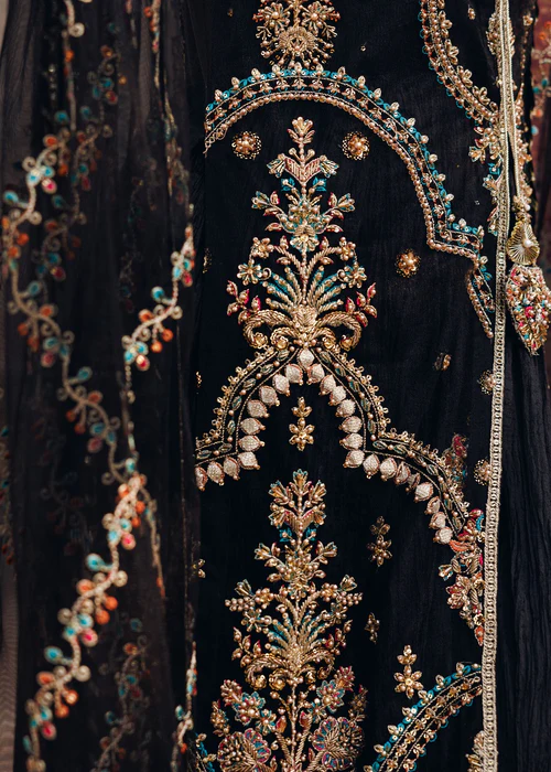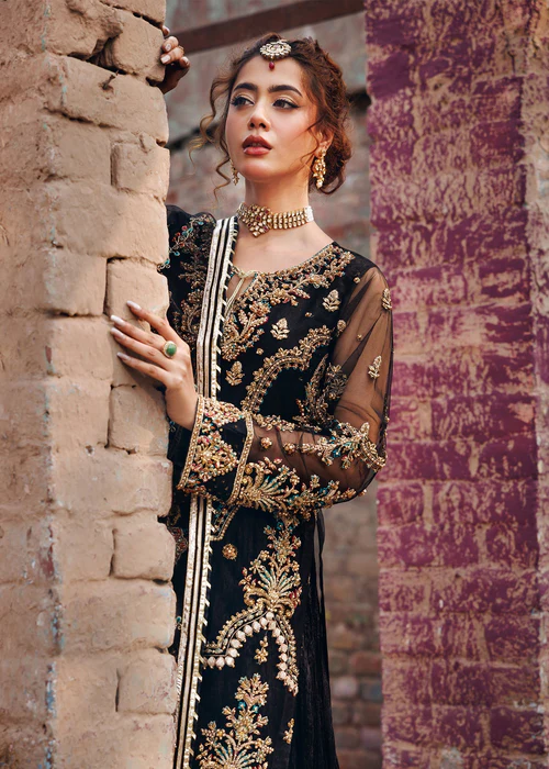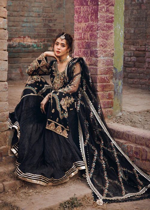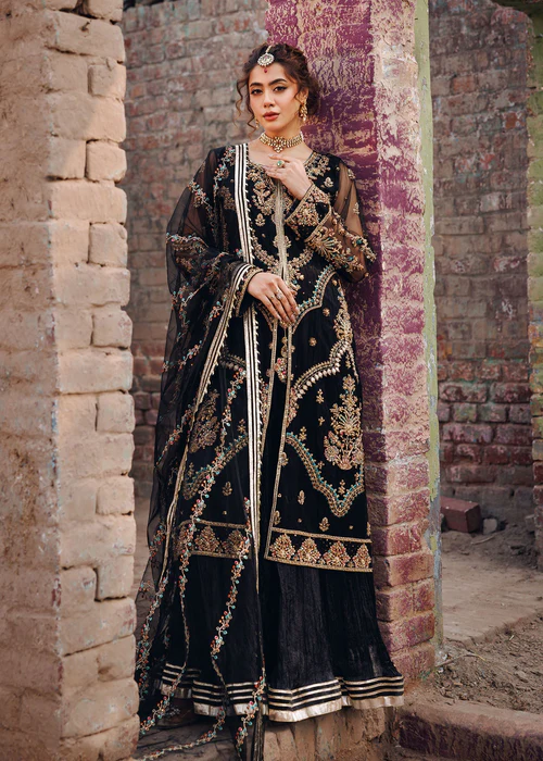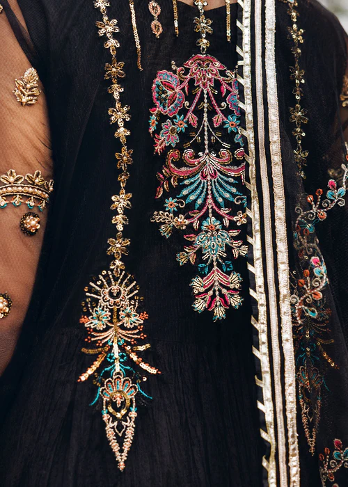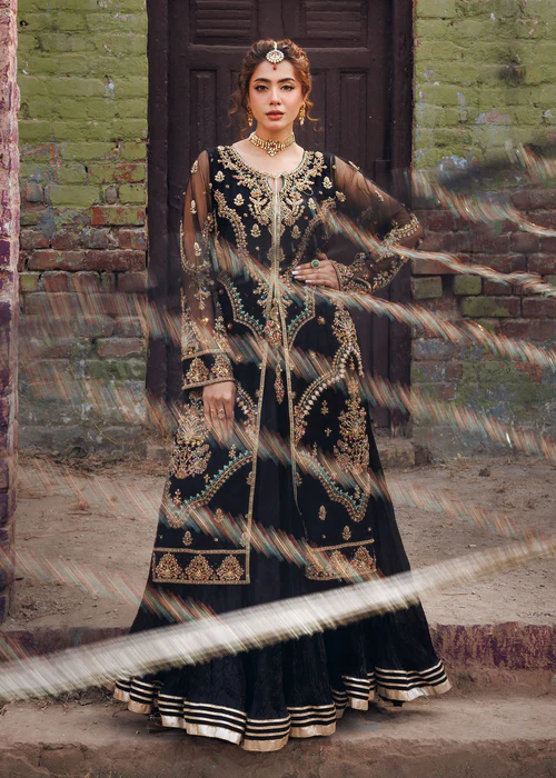 Additional Description: Front open jacket with crushed maxi paired with net duppata, an outfit completes the look with heavy embroidery and embellishment.