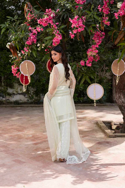 - Trouser finished with embroidered border Nd Embroidered organza dupata which finished with embroidered pallu